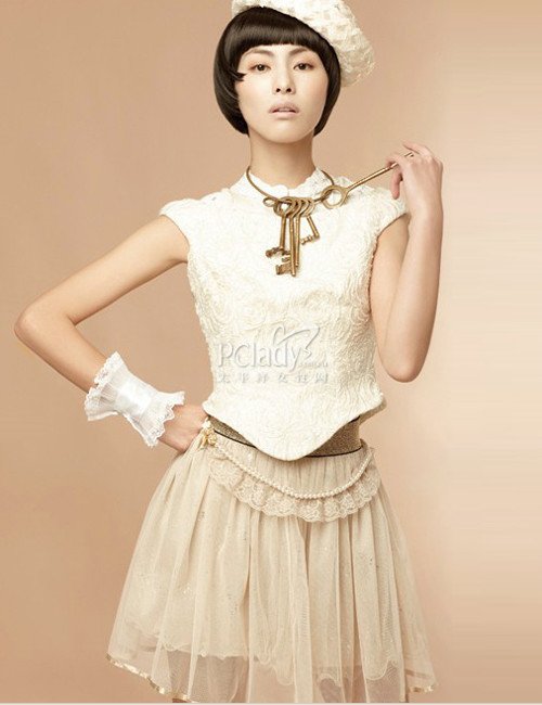 時尚點評:是不是模特身上的鑰匙項圈帶給你不少的回憶?除此以外,那件剪裁精良的蕾絲上衣也帶著記憶里的氣息,保守的小立領(lǐng)設(shè)計十分端莊,袖口以及衣角的設(shè)計精致得讓人忘記了呼吸。