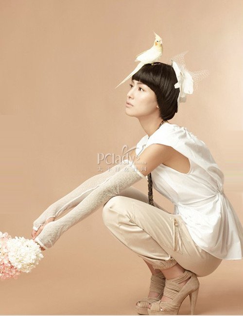時尚點評:記得在欲望都市電影版中,Carrie身著Vivienne Westwood設(shè)計的結(jié)婚禮服,頭上那支彩色的大鳥頭飾著實驚艷了很多人。其實扎只小鳥在頭上,效果也是一樣棒。值得一提:那雙蕾絲的露指手套也是制造優(yōu)雅的好單品。