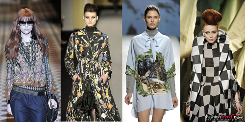 請大膽地使用印花或圖案,因為這是一個秋冬的花花世界。兼具70年代感和東歐民族感的傳統(tǒng)佩斯利花紋會非常流行;而鄉(xiāng)村風(fēng)格則采用從大自然中汲取靈感的物質(zhì)意象包括石頭、鵝卵石、木頭、羽毛等;還會有一些樹木、風(fēng)景、涉獵、捕魚等圖像。一個下一季最受歡迎的趨勢是離奇的插畫式圖案,其采用古怪甚至拙劣的日常圖象繪畫并具有某種頑皮的復(fù)古氣息。當(dāng)然還有彌漫著Deco之風(fēng)的印花,比如溫婉地鋪在花枝中的肉粉色玫瑰。格子的回歸非常重要,變化的尺寸和圖案形成一種錯配的效果,具有一種"壞品味"的故意效果。這一趨勢越古怪越好,比如有天鵝、建筑感的線條、50年代的時髦繪畫和故事書中的動物,而不僅僅是述說一個朋克皇后的故事;蛘甙巡煌叽绲狞c子、花卉進(jìn)行混搭,具有超現(xiàn)實主義的感覺。