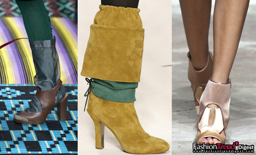 似乎從來沒有聽說過鞋"克夫",但確是這一季鞋子的有趣特征。或者我們可以稱之為護(hù)腿或襪套。Issey Miyake, Prada和Victor & Rolf都提供了可分開的護(hù)腿,在短靴上打造長筒靴的效果。還有一些是襪套的形式,比如Betty Jackson的透明襪套,為腿部創(chuàng)造了有趣的多層效果。Sportmax則是運動的多層效果。而christopher Kane這個鬼才使女人的腳踝在這一季變得性感無比。