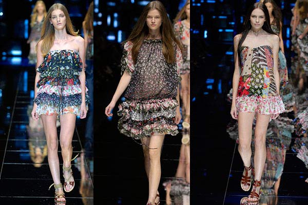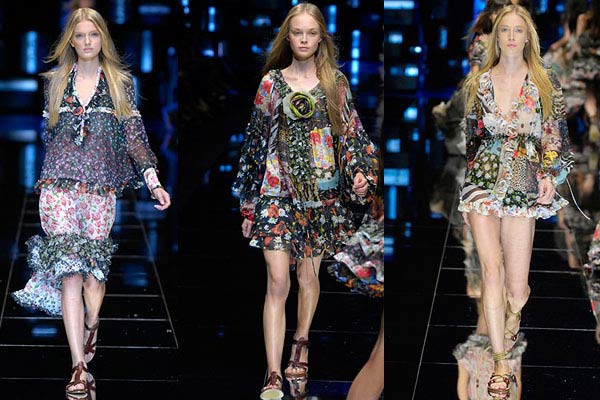 T臺上:D&G絕對是將碎花雪紡做到了極致,整個SHOW場仿佛一個花花的世界,輕薄但也不失分量感的設(shè)計如今被各種時尚品牌借鑒發(fā)揮。想找到這樣的單品非常容易。