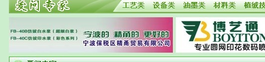 集萃網(wǎng)旗下的印花行業(yè)網(wǎng)站,從開辦到現(xiàn)在已經(jīng)有3年了,在我們的不斷努力下,已經(jīng)得到了印花行業(yè)所認(rèn)可與支持。在此,我們發(fā)現(xiàn)有很多的朋友,向我們咨詢了一些關(guān)于印花中所遇到的問題。為方便印花行業(yè)廣大朋友能及時(shí)解決生產(chǎn)中的技術(shù)難題,本站在推出“愛問專家”欄目,并榮幸邀請(qǐng)到多位行業(yè)知名技術(shù)專家現(xiàn)場(chǎng)為您解答疑問,同時(shí)我們也誠(chéng)邀印花行業(yè)的技術(shù)人才加入本站專家顧問團(tuán)體。