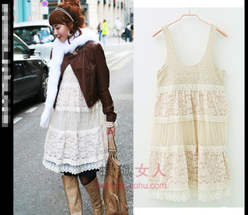 搭配Tips:充滿精致感的淑女蕾絲在冬日盛放,搭配一件酒紅色機(jī)車夾克,帥氣十足又不十女人味。在這個(gè)冬日成為人群焦點(diǎn)。