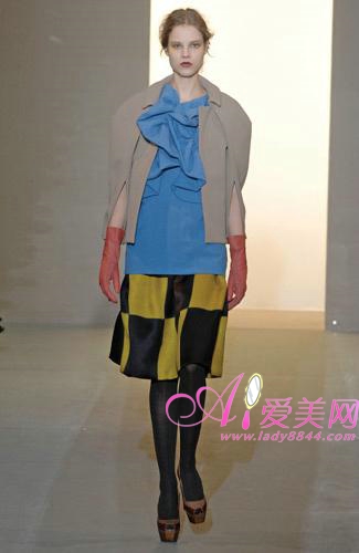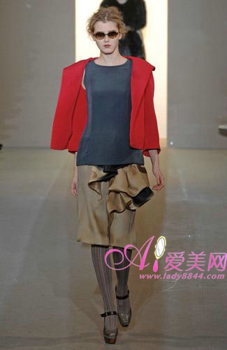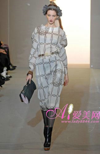 Consuelo Castiglioni 選擇以緩慢的腳步,并且不與過去的成功經(jīng)驗(yàn)混合,本季中以寬松的輪廓線條、低腰的剪裁,讓身體得到最舒適的放松,而且每一件衣服上的印花圖案,幾乎都可以當(dāng)作一件藝術(shù)品來欣賞,相當(dāng)獨(dú)特。色彩,是Marni 本季很重要的元素,大地般的柔和色調(diào),配上湖水綠、紫色、芥末黃、灰色、棕色、藍(lán)色等,而且穿插的橙橘色調(diào),豐富整個系列。此外,印花也是相當(dāng)搶眼,不同的圖案與色調(diào),辨識度相當(dāng)?shù)母,再加上小型太陽眼鏡的搭配,可說是極度的柔美,可說是2008秋冬相當(dāng)成功的一個系列之一。