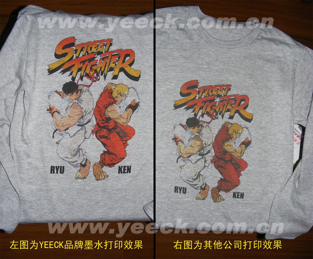 色彩比較(打印在同一件淺灰色衣服的正反面)