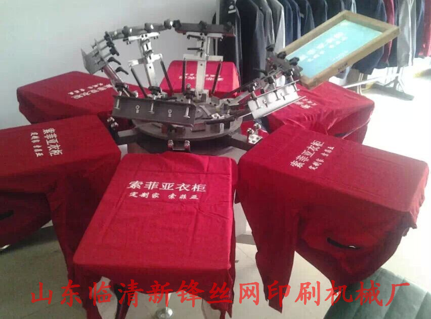該機(jī)適合于T恤衫、裁片、羊毛衫雨傘、皮革、玻璃、皮由、無(wú)紡布的收縮變形量大的產(chǎn)品套色印花,套印時(shí)準(zhǔn)確度高、方便,可使用熱固油墨,水漿,膠漿等多種材料。