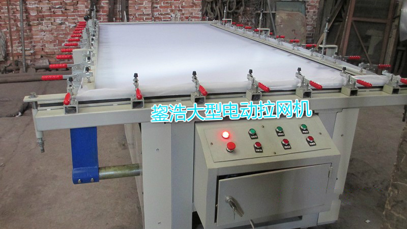 大型電動繃網(wǎng)機是制作專業(yè)大型網(wǎng)版的必備機械,具有經(jīng)久耐用,省時省力等特點。適合絲網(wǎng)印刷的各個行業(yè),如玻璃廠,服裝廠,制版廠和廣告的大網(wǎng)版和批量網(wǎng)版的制作,操作簡單,制版張力高,一經(jīng)推出好評不斷。此大圖規(guī)格是:1800*3000mm,也可根據(jù)客戶的需求加工定制,聯(lián)系電話:13131939856 歡迎各界朋友咨詢洽談!!