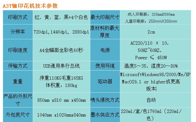A3數(shù)碼印花機(jī)機(jī)器圖片和參數(shù)如下