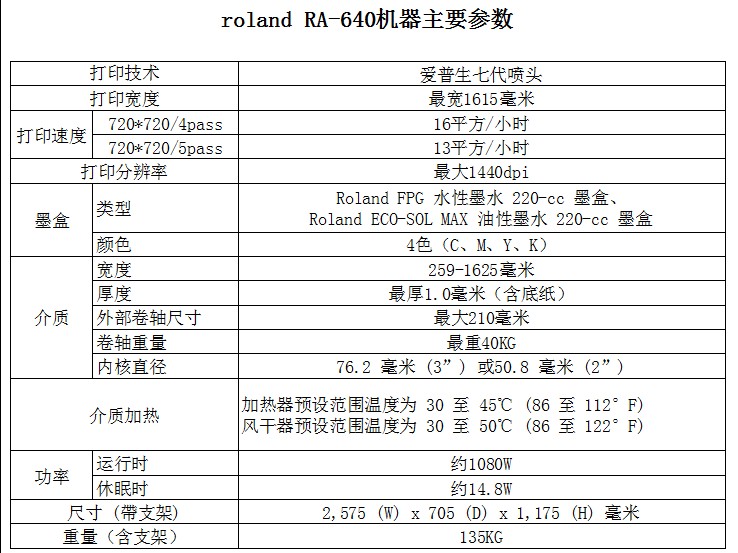 你好!我司是roland羅蘭寫真機華南總代理,我們擁有專業(yè)的技術團隊,真誠希望與您合作。由于機器本身的技術參數(shù)太多,這里我只列出主要參數(shù)-幅寬、速度、寬度、精度等。詳細的請來電咨詢。