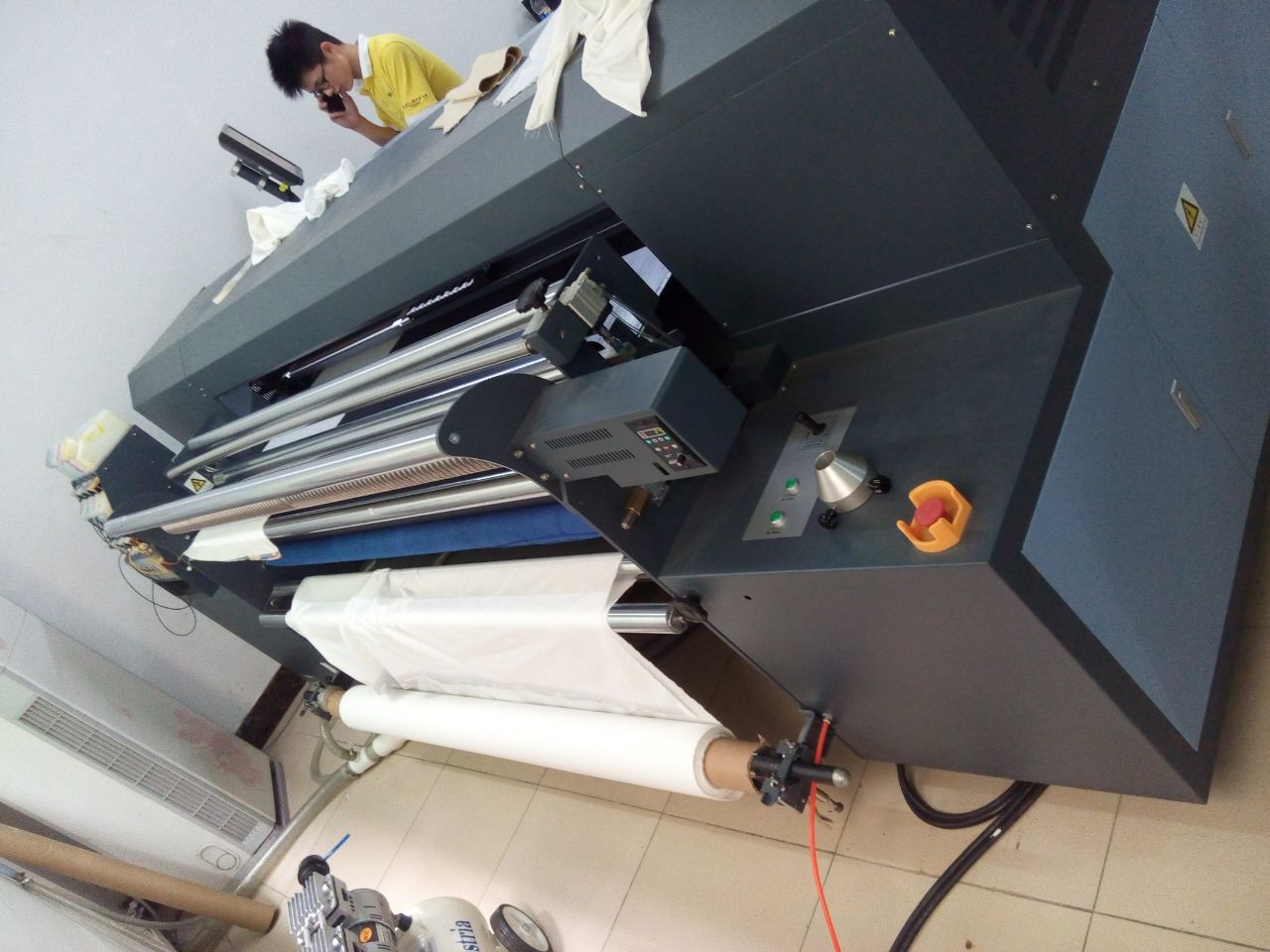 配合活性墨水,可以在棉、絲、麻、羊毛、等布料上直噴印花;