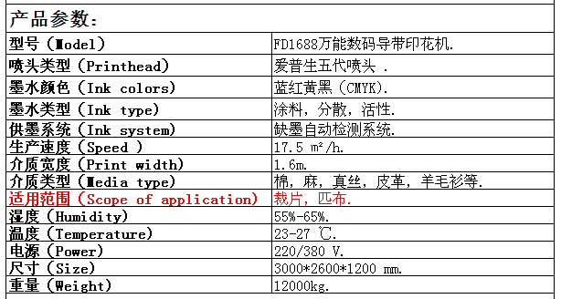 FD1688導(dǎo)帶數(shù)碼印花機產(chǎn)品概述: