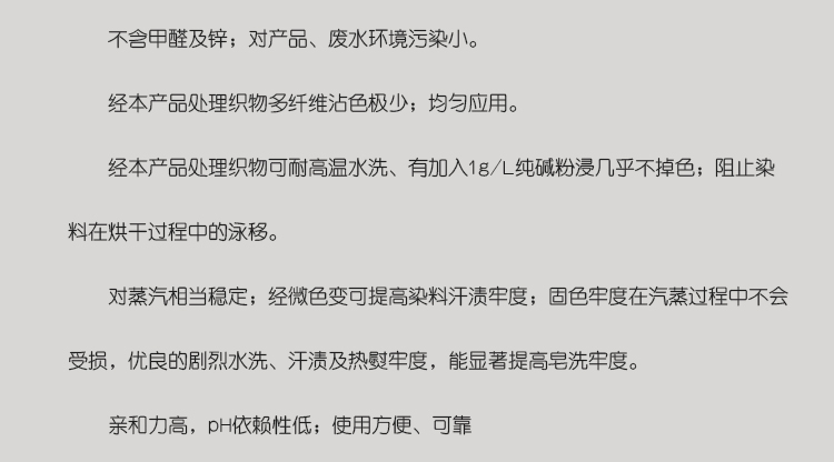 推出高效、環(huán)保、節(jié)能、減排的綠色新型助劑、低消耗助劑,無磷、不含APEO、易生物降解的助劑,并致力于減少化學品使用。