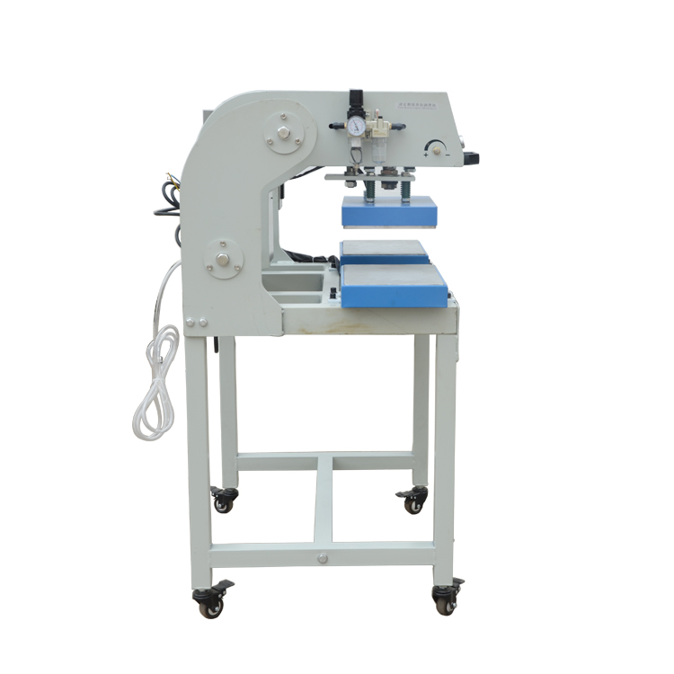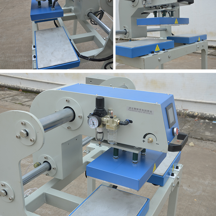 氣動(dòng)雙工位燙畫機(jī)可將升華類、溶劑類油墨的彩色圖案與文字經(jīng)熱轉(zhuǎn)印在棉、麻、化纖、尼龍等織物及陶瓷制品上,還可進(jìn)行植毛燙畫和發(fā)泡印花工藝等的熱處理,及服裝的低溫低壓襯與面料的粘合,如服裝、鞋帽等粘合之用,也可用于生產(chǎn)小批量的手帕