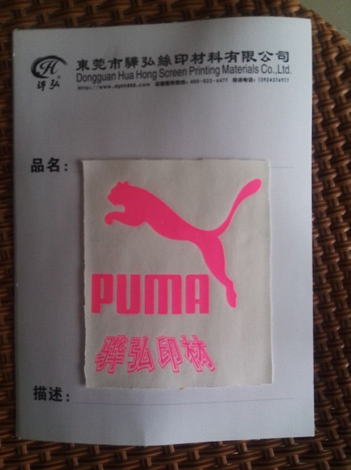 印花(1500--2000目網(wǎng)紗)--風(fēng)干(60-70°3-5分鐘)或熱處理(150°C,2-3分鐘)