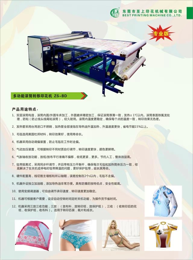 本廠引進意大利技術并根據市場需求不斷鉆研、改進、開發(fā)ZS系列轉移印花機。