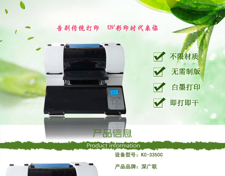 隨著手機、電腦、Ipad等電子產品的普及,人們對手機的需求不斷攀升。無論是火車上、公交車、辦公室,還是餐廳、商場、電影院……人們走到哪里帶到哪里。縱觀市場,大多手機殼,非白既黑,毫無特色,早已不能滿足人們的個性化需求。針對這個情況深廣聯(lián)科技有限公司設計出了KC-A3-3350C-UV打印機,是我司生產的一款小型uv平板打印機,它的出現給世界帶來了一場前所未有的趨勢!
