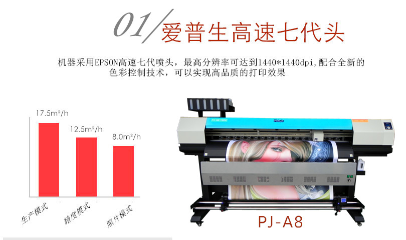 機器采用Epson新研發(fā)的高速7代鍍金打印頭,噴頭包含180/列*6列