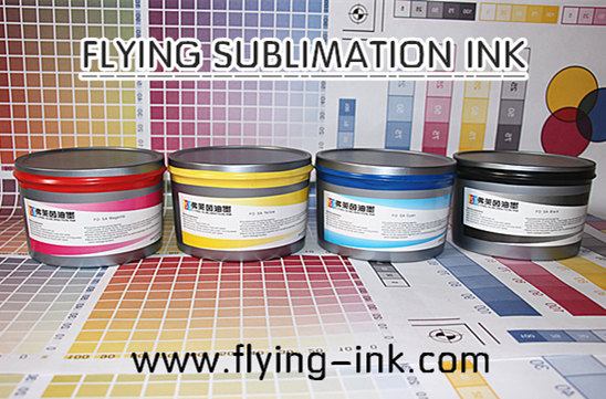 印刷工藝:用膠印機器將升華熱轉印油墨印在雙膠紙(銅版紙)上,印出花紙;然后將花紙和布料一起放在熱轉印機器內,加熱180-220℃,加壓,時間15-30S,得出成品(油墨可直接上機使用,不需添加助劑)。