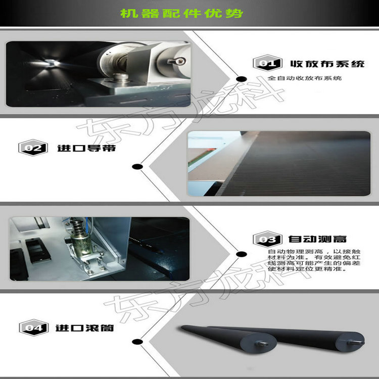 能夠在最大厚度為100mm的材料上打印,機器自動檢測介質(zhì)厚度,根據(jù)介質(zhì)厚度自動調(diào)整噴頭高度,提高生產(chǎn)的自動化程度,和圖像的輸出質(zhì)量。