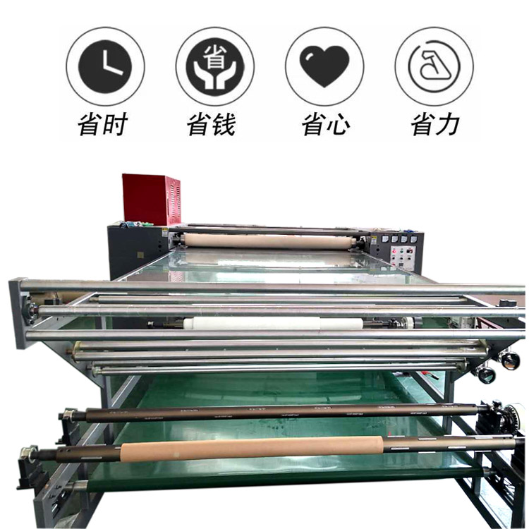 本廠的毛毯是采用的美國(guó)杜邦原材料生產(chǎn)上海制造的,滾筒為雙層防爆滾筒,雙層比單層的更安全、更牢靠。機(jī)械配置上我們還贈(zèng)送兩根氣漲軸(一收一放),機(jī)械重量在3000kg左右,有效門(mén)幅面可根據(jù)客戶需求來(lái)定制!我們的價(jià)格也是因?yàn)橘|(zhì)量而定的,我們有信心把機(jī)器做到最好,所以我們對(duì)顧客也是有保障的!選擇我們的機(jī)器是不會(huì)錯(cuò)的!我們的產(chǎn)品質(zhì)保一年,終身服務(wù)客戶。 備注:本廠所有的產(chǎn)品都可以根據(jù)客戶要求訂制。此款機(jī)型為上進(jìn)式,更便于轉(zhuǎn)印成衣,裁片,對(duì)位準(zhǔn)確,毛毯使用氣動(dòng)或液壓加壓,使產(chǎn)品印出來(lái)顏色更深,更鮮艷,無(wú)重影,大大提高轉(zhuǎn)印速度。 產(chǎn)品用途特點(diǎn): 1,不銹鋼加熱管直接加熱油層,升溫速度快,40分鐘內(nèi)便能達(dá)到230多度; 2,外設(shè)加油箱,添加導(dǎo)熱油非常方便,自動(dòng)關(guān)閉閘門(mén)防爆的優(yōu)點(diǎn),安全無(wú)憂。 3,毛毯脫離式,采用同步桿調(diào)節(jié),并且?guī)в袎毫ζ胶鈼U,確保毛毯和加熱滾筒壓力一致,徹底解決關(guān)機(jī)停電時(shí)毛毯帶降溫問(wèn)題,更好保護(hù)毛毯,延長(zhǎng)使用壽命; 4,使用變頻器調(diào)速,可自由調(diào)節(jié)轉(zhuǎn)印速度,轉(zhuǎn)速速度更加穩(wěn)定; 5,可選配自動(dòng)收,放布系統(tǒng); 6,本機(jī)電器采用高品質(zhì)電器,電器和主機(jī)分離結(jié)構(gòu),使電器壽命延長(zhǎng),數(shù)字控制器,精度高。帶安全裝置,左右雙急停開(kāi)關(guān); 7,硬件配置高,主側(cè)板,滾筒,全部真材實(shí)料,所有零件自己加工,電鍍,安裝,專業(yè)精工制作; 8,收放和主機(jī)整體制作,走紙,走步平行準(zhǔn)確無(wú)偏移,占地面積少,節(jié)約人工,整體效益高。 9,三放,三收,帶布料收緊系統(tǒng),紙張布料不皺。產(chǎn)品,無(wú)色差,重影,轉(zhuǎn)印中不移位。節(jié)約成本。