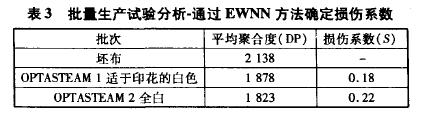 實踐證明,應(yīng)用OPTASIZEdOPTASTEAM工藝,纖維損傷最小,漂白效果最佳。顯然,除所要求的白度>70CIE和>75CLE外,使用助劑組合產(chǎn)品TISSOCYL OS.A/OPTAVON MEX 的OPTASTEAM工藝,能使不同質(zhì)量的棉織物獲得極佳的吸水性和很好的毛效。此外,依靠OPTASIZE工藝,在退漿工序中獲得了良好的脫礦質(zhì)結(jié)果,即吸液性<40p.,s,這對紡織印花的是必要條件。產(chǎn)品灰分總含量最高可降低93% ,經(jīng)OPTASIZE處理,催化劑含量降低了約5Q%。這一結(jié)果已不影響工藝處理結(jié)果。若采用并且完整的工藝可使鐵的含量降低75%。處理后對織物的損傷分別為印花織物0.18,全白織物0.22,都非常低(見表3)。