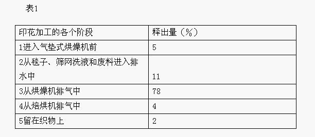 據(jù)BTRA介紹,印度純棉印花產(chǎn)品中大約50%應(yīng)用涂料印花,全年消耗火油大約1.36億升。表1列出了不同印花階段的火油釋出量(%),可見接近90%的火油都排入大氣中,其全年排放總量可高達(dá)1.22億升。既浪費(fèi)了大量能源,又污染了環(huán)境。