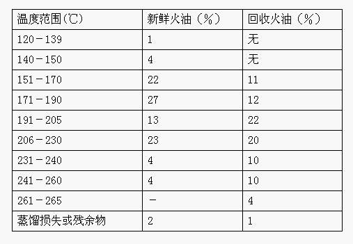 表2 新鮮火油和回收火油蒸餾情況的比較