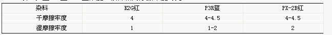 表1對(duì)K型、P型、PX型濃度、條件相同摩擦牢度對(duì)比