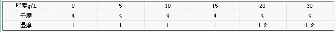 尿素在上漿打底可時(shí)同步進(jìn)行。尿素在活性印花中起到很重要的作用,尿素是活性染料的優(yōu)質(zhì)助溶劑也是良好的吸濕劑,蒸化是起到吸濕溶脹的作用使纖維膨化有利于染料擴(kuò)散滲透。印花前軋尿素使尿素滲透到纖維內(nèi)部,在一定的溫度和濕度下,進(jìn)行蒸化加大纖維的溶脹程度使染料更多的接觸纖維,更大程度地發(fā)生共價(jià)鍵的結(jié)合,提高固色率。以下是做軋尿素與不這軋的摩擦牢度對(duì)比實(shí)驗(yàn):