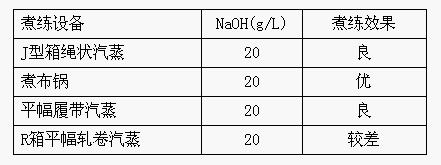 針對蠟印布生產(chǎn)的特性,用以下幾種設(shè)備進行了煮練試驗,其效果如表1所示。