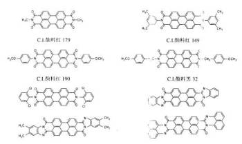 電荷產(chǎn)生材料即為有機(jī)顏料著色劑,要求有青、品紅、黃三原色顏色配伍,這些有機(jī)顏料包括以下具體結(jié)構(gòu)[10]: