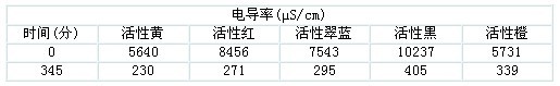 表1-1墨水用染料除鹽開始和結(jié)束時滲出液的電導(dǎo)率