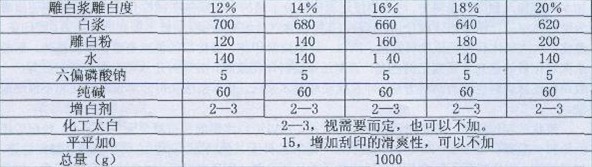 【集萃網(wǎng)觀察】二、純棉針織品的雕印印花 1.糊料的選擇 用于純棉針織品雕印印花的糊料,除了直接印花所具備的條件外,還需具有很強(qiáng)的耐還原性和耐堿性,還原劑和堿劑加入不會(huì)導(dǎo)致糊料粘度的變化,要求糊料具有良好的穩(wěn)定性,脫糊方便,目前市面上的淀粉醚結(jié)構(gòu)類(lèi)糊料都可適用。 2.染底色染料的選擇 拔染印花的染底色主要用雕白粉可拔活性染料,而雕印印花色漿為還原染料。對(duì)于雕印印花的染底色的染料的選擇條件:雕白粉可拔,所染底色經(jīng)得起高溫蒸化不變褪色,有相近的上染曲線(xiàn)和固色率,保持色光的重演性。一般以各染料公司提供的三原色較好。染底色的染料可在乙烯砜結(jié)構(gòu)的中溫型染料中選擇,例如常用進(jìn)口活性染料系列有Remazol中溫型活性染料,Drimarene s系列,汽巴的三元色F3B紅、2R黃、2R紅、2 R蘭、N150黑,永光的Everzol,萬(wàn)得的B型,大部分都有良好的可拔性。選擇染底色染料必須先做雕白試驗(yàn),確?砂危拍苁褂。 3.助劑的選擇: (1)雕白粉學(xué)名甲醛次硫酸氫鈉,在雕印印花中雕白粉起到兩個(gè)作用,首先,使還原染料還原成隱色酸,對(duì)纖維具有親和力,有效地上染纖維,二是破壞地色染料的發(fā)色基團(tuán),使印花部分的染地消失。根據(jù)地色染料的易拔性和花漿的染料用量掌握好雕白粉的用量是非常關(guān)鍵的,雕白粉用量太少,雕色不凈、色暗、發(fā)色深淺;雕白粉用量太多,會(huì)出現(xiàn)花形滲化、雕印處纖維受損,嚴(yán)重的出現(xiàn)破洞。特別是對(duì)中淺色底色的拔染印花,如果雕白粉用量過(guò)多,那么在生產(chǎn)時(shí)會(huì)產(chǎn)生不需雕白部分的底色搭色,或蒸化時(shí)拖開(kāi)及褶皺搭色等疵點(diǎn)。一般中淺底色雕印時(shí),雕白粉用量可控制在8—1 2%,而在深色底色雕印時(shí),則雕白粉用量可控制在12—20%。 (2)小蘇打或純堿等堿劑在還原染料印花中至少有四大作用,一是使還原后的染料隱色酸成為鹽而溶解;二是中和雕白粉分解時(shí)產(chǎn)生的酸性物質(zhì),免使纖維強(qiáng)力受損,三是使雕白粉在堿性印漿中較為穩(wěn)定;四是有利于還原染料發(fā)色。 (3)食鹽:在雕印處方中加入一定量的食鹽,可提高染料的固色率。 (4)甘油:甘油的加入起到蒸化時(shí)吸濕的作用,還原染料蒸化時(shí)的反應(yīng)是放熱反應(yīng),需要補(bǔ)充適量的水分才能使染料在較短的時(shí)問(wèn)內(nèi)擴(kuò)散到纖維內(nèi)部與纖維結(jié)合。甘油還能使還原染料發(fā)色艷亮,甘油的加入量不能少。 4.純棉針織品的雕印印花工藝流程: 制版↘ 坯布前處理→染地色→拉幅烘干→印花→汽蒸 調(diào)漿↗ →冷水洗→氧化→水洗→皂洗→水洗烘干→浸軋柔軟劑→超喂定型 5.純棉針織品的雕印印花工藝處方: (1)還原染料 純棉針織品的拔染印花色漿選用的染料是還原染料,由于還原染料本身不溶于水,不能直接加水溶解加入到印花糊料中,而必須使還原染料分子結(jié)構(gòu)中的羰基在堿性介質(zhì)中用還原劑還原成為隱色體鈉鹽而溶于水才能使用。這樣,其隱色體對(duì)纖維有親和力,能上染到纖維上去,經(jīng)印花、蒸化、水洗氧化后使還原染料發(fā)色。所以,還原染料印花、蒸化后的色光是隱色體的色光,而經(jīng)水洗氧化后的色光才是真正的色光。調(diào)制還原染料印花漿時(shí),必須對(duì)還原染料本身進(jìn)行處理,一般調(diào)制還原染料色漿有兩種方法,即漿狀法和基本漿法,基本漿法又可分為預(yù)還原法和不預(yù)還原法。 漿狀法制作簡(jiǎn)單,只要把還原染料與甘油、水以適當(dāng)比例混和研磨至無(wú)色點(diǎn)即可,傳統(tǒng)的還原染料一般需研磨l6—24小時(shí)。漿狀液中除甘油外無(wú)其他藥劑,所以,漿狀液儲(chǔ)存穩(wěn)定性好,如遇沉淀,則攪拌后不影響使用。超細(xì)粒子的還原染料,則研磨時(shí)問(wèn)大大減少或不用研磨。如果把還原染料預(yù)先制成漿狀液,則有利于調(diào)漿的簡(jiǎn)單化。也有超細(xì)粒子的還原染料漿狀液供應(yīng),則可隨時(shí)調(diào)制印花漿,只要稱(chēng)取一定量的染料漿狀液加入糊料中攪拌即可。 預(yù)還原法是把還原染料先制成漿狀液,然后在堿性介質(zhì)中用保險(xiǎn)粉進(jìn)行還原,將還原染料還原成染料隱色酸鈉鹽,再加入雕白粉備用。預(yù)還原法制得的基本漿使用方便,但不能放置過(guò)久,否則會(huì)氧化而產(chǎn)生色點(diǎn),同時(shí)由于雕白粉的預(yù)先加入,如果基本漿放置時(shí)間長(zhǎng)會(huì)分解而影響雕白度。另外,在調(diào)制基本漿時(shí)如溫度控制不當(dāng),容易造成過(guò)度還原。 不預(yù)還原法制備基本漿是把染料制成漿狀液后不加保險(xiǎn)粉,而是將染料漿狀液與糊料、雕白粉、堿劑攪拌制成基本漿。不預(yù)還原法與預(yù)還原法比較,由于沒(méi)有保險(xiǎn)粉存在,不會(huì)造成染料過(guò)度還原,但由于雕白粉的加入,基本漿也不能放置很長(zhǎng)時(shí)間,否則會(huì)使染料氧化造成色點(diǎn)或雕白粉的分解而降低雕白作用。 因此,在還原染料印花生產(chǎn)時(shí)推薦選用漿狀法較為合適,也可稱(chēng)為懸浮體印花法。適合于印花的常用還原染料有:還原黃7GK、還原橙RK、還原蘭3G、還原蘭2B、還原綠FFB、還原綠4G、還原紫2R