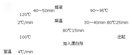 煮漂工藝條件如工藝曲線所示,每缸毛巾坯布200kg,溶液2000L,浴比1﹕10。