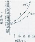 圖1堿濃度對8%PVA溶液粘度的影響圖2不同時間對8%PVA溶液粘度的影響