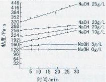從圖l、2看出,堿能使PVA凝膠粘度增加,增加的程度隨堿濃、溫度、時問的增加而上升。在清水中,即圖2中NaOH濃度為0時,相反,則有下降的趨勢。