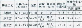 【集萃網(wǎng)觀察】纖維素酶處理可去除棉針織物表面的絨毛,減少死棉及紗結(jié)頭,使布面紋路清晰、光滑及平整,并可防止起球,提高產(chǎn)品檔次。 1 常規(guī)酶洗工藝分析 1.1工藝流程及處方 (1)工藝流程 氧漂→水洗→中和→脫氧→酶洗→水洗→酶滅活、中和→染色 (2)處方 ①酶洗/(g/L) 中度酶洗 輕微酶洗 高濃度酶制劑液 0.7 0.4 冰醋酸 0.23 0.23 溫度/℃ 55 55 時(shí)間/min 50 50 ②滅活、中和/(g/L) 純堿 1.5 皂洗劑 1 溫度/℃ 75~80 時(shí)間/min 20 1.2工藝存在的問(wèn)題 棉針織物經(jīng)氧漂后,布面雜質(zhì)已基本去除,再進(jìn)行酶洗就能充分發(fā)揮纖維素酶的作用。但酶洗后,布面手感較差,滲透性下降較嚴(yán)重,常會(huì)產(chǎn)生輕微色花。雖經(jīng)加強(qiáng)水洗及酶滅活,但因水、蒸汽等供給不均衡,后處理?xiàng)l件無(wú)法保持一致,而導(dǎo)致纖維強(qiáng)降不易控制。加上后續(xù)加工粉塵較大,也造成了染色色光不穩(wěn)定,特別是白色、淺色品種易泛黃。 為了解決上述問(wèn)題,曾通過(guò)加強(qiáng)工藝監(jiān)控來(lái)規(guī)范操作,如嚴(yán)格控制并調(diào)整pH值、增加酶作用的時(shí)間,提高工藝溫度等,但產(chǎn)品質(zhì)量?jī)H略有改善,產(chǎn)品一等品率也只能保持在85%左右。 2 改進(jìn)對(duì)策 2.1工藝調(diào)整 經(jīng)過(guò)大量的試驗(yàn)和生產(chǎn)實(shí)踐,發(fā)現(xiàn)常規(guī)工藝酶洗后,布面滲透性下降是影響染色的主要因素。于是,對(duì)常規(guī)工藝進(jìn)行如下調(diào)整。 (1)工藝流程 坯布酶洗→氧漂→水洗→中和→脫氧→染色 (2)處方/(g/L) 中度酶洗 輕微酶洗 高濃度酶制劑液 0.8 0.5 冰醋酸 0.3 0.3 枧油 0.3 0.3 溫度/℃ 55 時(shí)間/min 50 2.2調(diào)整后工藝優(yōu)點(diǎn) 該工藝調(diào)整后,坯布酶洗畢不需水洗,可直接加堿及氧漂助劑,在高溫(96℃)及堿性條件下進(jìn)行氧漂。與原工藝相比,化學(xué)品的用量雖然有所增加,但省去了酶洗后的水洗,以及酶滅活、中和等工序,節(jié)省了能源,仍具有較好的經(jīng)濟(jì)效益。采用新工藝后,布面滲透性、強(qiáng)度也有了較大的改善;酶洗工藝條件容易控制,酶洗后充分利用了氧漂及水洗,使布面更干凈,后道加工粉塵較少,徹底解決了白色、淺色品種易泛黃等問(wèn)題,產(chǎn)品一等品率也提高到98%以上。 2.3新舊工藝比較 分別采用原工藝酶洗、新工藝酶洗,對(duì)全棉18.5 tex 1+1羅紋織物進(jìn)行處理,之后用深大紅色上染,經(jīng)過(guò)多次試驗(yàn),得到不同酶洗工藝對(duì)織物性能的影響(表1)。 表1數(shù)據(jù)表明,在布面酶洗效果達(dá)到客戶(hù)要求的情況下,新工藝處理后的布面毛效、白度有較大幅度的改善,減量率、強(qiáng)力損失率降低,各項(xiàng)色牢度均提高半級(jí)以上,部分已接近未酶洗布的性能,說(shuō)明調(diào)整后的新工藝是切實(shí)可行的。 表1不同酶洗工藝對(duì)棉針織物性能的影響 注:強(qiáng)力損失以未酶洗的為基準(zhǔn)。 3 注意事項(xiàng) (1)加纖維素酶前,坯布必須浸透。 (2)pH值必須調(diào)到4.5~5.0。 (3)加纖維酶時(shí),必須關(guān)閉機(jī)臺(tái)蒸汽,防止局部溫度過(guò)高而使纖維酶活性下降。 (4)酶洗后氧漂的堿量要適當(dāng)增大,以剛好中和酶洗浴中的酸為宜,滿(mǎn)足氧漂的工藝需求。