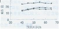 在浸軋染液后,織物上的水主要以3種方式存在:(1)分布在纖維表面或織物組織結構空隙中;(2)處在纖維間的毛細管網(wǎng)絡中;(3)進入纖維內部,吸附在纖維表面。預烘目的:(1)提供纖維溶脹和染料滲透的時間,確保染料正常擴散上染;(2)盡量去除織物上的水分,特別是流動水和毛細管水,使織物在汽蒸固色時其濕度低于纖維臨界含水率。從圖1可以看出,隨著預烘時間的延長,織物的K/S值不斷增大,一定時間后才略微下降。原因是織物的含水量太高,進入汽蒸箱后,升溫相對較慢,需較長時間才能達到所需的固色溫度,生產效率低;另外,染料在汽蒸過程中水解損失較多,染料利用率較低,色牢度也變差,織物的K/S值也就較小。相反,預烘時間人短,織物的含水量太高,在相同汽蒸時間條件下,織物從蒸汽中吸收的水分可能不足,導致部分染料還沒有溶解或者和纖維發(fā)生固色反應.另外,織物可能發(fā)生過熱現(xiàn)象,染料可能發(fā)生分解,導致和纖維反應的染料量減少,織物的K/S值也較。疄楸阌谌玖系钠椿焓褂茫钚渣SK—R、活性大紅K一2G和活性黑KN.B預烘時間都選擇55s。