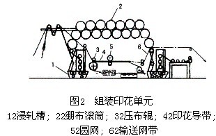 為使設(shè)備更經(jīng)濟(jì)實(shí)用,可在不影響原有零部件的條件下組裝印花單元(見(jiàn)圖2) ,使印花機(jī)具有印花絲光和浸軋絲光兩種功能。對(duì)不同的絲光機(jī)應(yīng)采用不同的組裝方法。