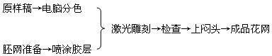 【集萃網(wǎng)觀察】激光制網(wǎng)是將圖案直接轉(zhuǎn)移到網(wǎng)上的一種新的制網(wǎng)技術(shù),其基本原理是將乳膠涂覆在圓網(wǎng)上,通過與計算機(jī)的結(jié)合,數(shù)字化的圖案直接控制激光點(diǎn)對圓網(wǎng)上的乳膠進(jìn)行雕刻(氣化或蒸化乳膠)從而完成圖案的轉(zhuǎn)移。它特別適用于精細(xì)直線條、云紋、水花類花型,精度可達(dá)0.2mm,并可用125目~215目的高目數(shù)圓網(wǎng)制作。 將待制網(wǎng)的花樣圖案先進(jìn)行分色處理成正片,然后對正片上每個循環(huán)進(jìn)行掃描,掃描器讀取的圖像由計算機(jī)存貯,并在彩色顯示屏上放映、核查、修改。已核查的分色數(shù)據(jù),記錄在紙帶上,并對激光束進(jìn)行高精度的控制。通過花樣的分色數(shù)據(jù)來直接控制激光光束的開和關(guān),激光光束按分色的信息瞬時氣化圓網(wǎng)上的膠質(zhì),雕刻出分色圖案花紋。 激光雕刻制網(wǎng)工藝流程如下: