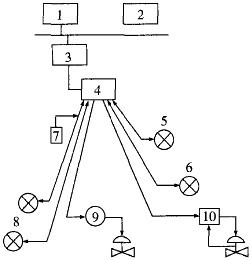 1-操作器接口;2-過程計(jì)算機(jī);3-多回路控制器:4-模擬一數(shù)字混合I/O接口;5-4~20 mA模擬數(shù)字通信;6,8-智能變送器;7-手操通信器;9-智能定位器;10-智能定位器