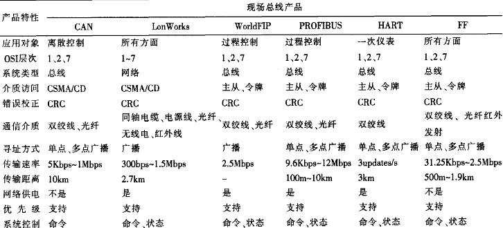 表1 幾種現(xiàn)場總線產(chǎn)品及性能比較
