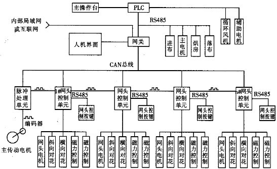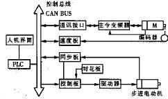 步進(jìn)電動(dòng)機(jī)獨(dú)立傳動(dòng)系統(tǒng)以一臺PLC為主機(jī),通過RS接口向主令變頻器發(fā)出主令驅(qū)動(dòng)指令.變頻電動(dòng)機(jī)帶動(dòng)導(dǎo)帶運(yùn)行:然后通過一頭掛靠在CAN總線上的速度板采樣.導(dǎo)帶被動(dòng)輥編碼器信號通過總線送回主機(jī).主機(jī)叉把該信號通過總線送給伺服驅(qū)動(dòng)器控制板:控制板發(fā)出脈沖信號給步進(jìn)驅(qū)動(dòng)器驅(qū)動(dòng)步進(jìn)電動(dòng)機(jī).此時(shí)同步板又把步進(jìn)電動(dòng)機(jī)編碼器信號采樣回去.通過總線反饋給主機(jī):主機(jī)把兩個(gè)編碼器信號進(jìn)行比較處理.并進(jìn)行調(diào)節(jié),以達(dá)到導(dǎo)帶和圓網(wǎng)之間的同步和圓網(wǎng)與圓網(wǎng)之間的同步。