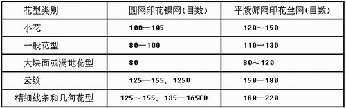 表4—2花型與印花篩網(wǎng)網(wǎng)目的關(guān)系