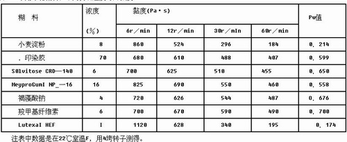 常用印花糊料在不同剪切速度時(shí)的黏度列于表5—4。