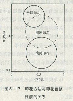 圖5—17印花方法與印花色漿性能的關(guān)系