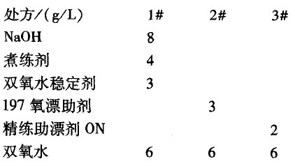 助劑:精練助漂劑ON,雙氧水,雙氧水穩(wěn)定劑,NaOH,Na2SO4,Na2CO3,197氧漂助劑