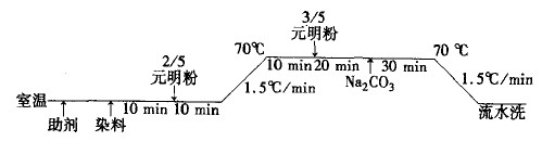 進(jìn)布一練漂(95 ℃ X40 min,浴比1:10)一染色(浴比1:1O) -整理