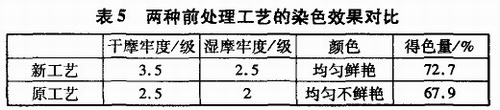 由表5知,采用新工藝練漂的莫代爾/棉毛巾織物染色均勻,顏色鮮艷,得色量高,色牢度達(dá)到客戶要求。