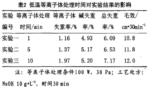 。1)低溫等離子體處理后,織物有一定的失且時(shí)間越長(zhǎng),失重越大。